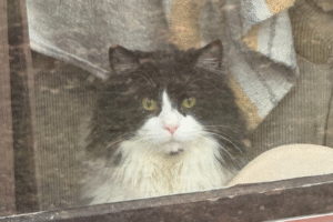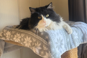 There were no orange cats that day. Instead, a staff member gently suggested we meet a long-haired black and white adult boy named Sir Frosty. She explained that he had recently been adopted and returned within just three days because he was described as too affectionate, too friendly, and too vocal.