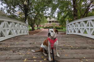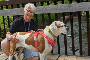 Clem’s start with us came with extra care and patience. She bonded quickly with my cousin and me, but she was hesitant around my husband, Jim. We worked with a dog behaviorist over Zoom, followed every instruction, and before long, Clem and Jim became best friends. Her past held unknowns. She was listed as abandoned in Oklahoma and believed to have been a puppy mill mom. She arrived heartworm positive and had already begun treatment before coming to us. For months, we carefully limited her activity until she tested negative on September 1. That day marked the beginning of a joyful, playful life she fully embraced.