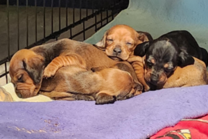 In late 2024, a litter of puppies and their mom arrived at the shelter. I kept in close contact with their foster family, asking for updates and photos. My husband and I kept going back and forth about one particular puppy, the tiny black apple girl. There was just something about her.