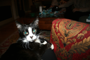 About a year later, we returned to Anderson Humane because we knew Maddie would love a companion. That is when we met Lyn, a sweet tuxedo kitty with the gentlest nature. Bringing Lyn home was one of the best decisions we made. The two of them formed a special bond and filled our home with warmth, comfort, and companionship.
