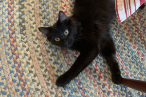 In October, our hearts were tugged again when we learned about Treble, a back-leg amputee kitten who needed foster care. Though we thought we were done collecting black cats, we brought him home. Almost immediately, Treble, renamed Buddy, stole our hearts and became a permanent part of our family. He was unflappable, even appearing on WGN in Dean Daubert’s lap to show off just how calm and loving a black cat could be.