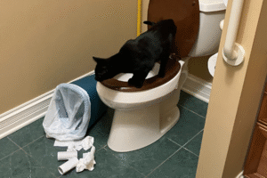 We began fostering Bagel Bites and her four kittens in the spring, hoping to adopt just a pair of the kittens. Bagel Bites was the sweetest mom, and we were overjoyed when she quickly found a loving home. Squirt and Pepper became part of our family, joining our resident cat, Cranberry, a dignified rescue from the Universal Cat Distribution System.